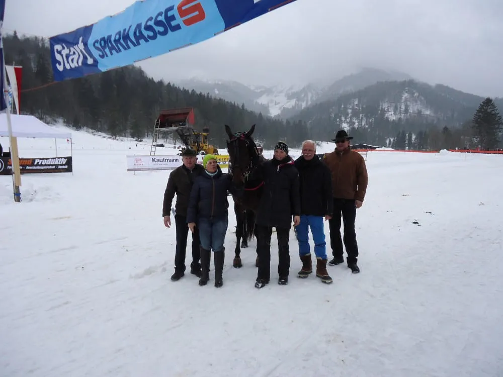 Sieger des 5. Rennen um das Goldene Hufeisen mit dem Preisspender Thomas Niederstrasser, Ellmau